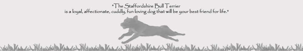 Thank you for taking the time to stop by our website, we take great pride in our Staffords so please take the time to look around and enjoy the breed we love so much. Remember to stop by again soon, as we are always updating our site.